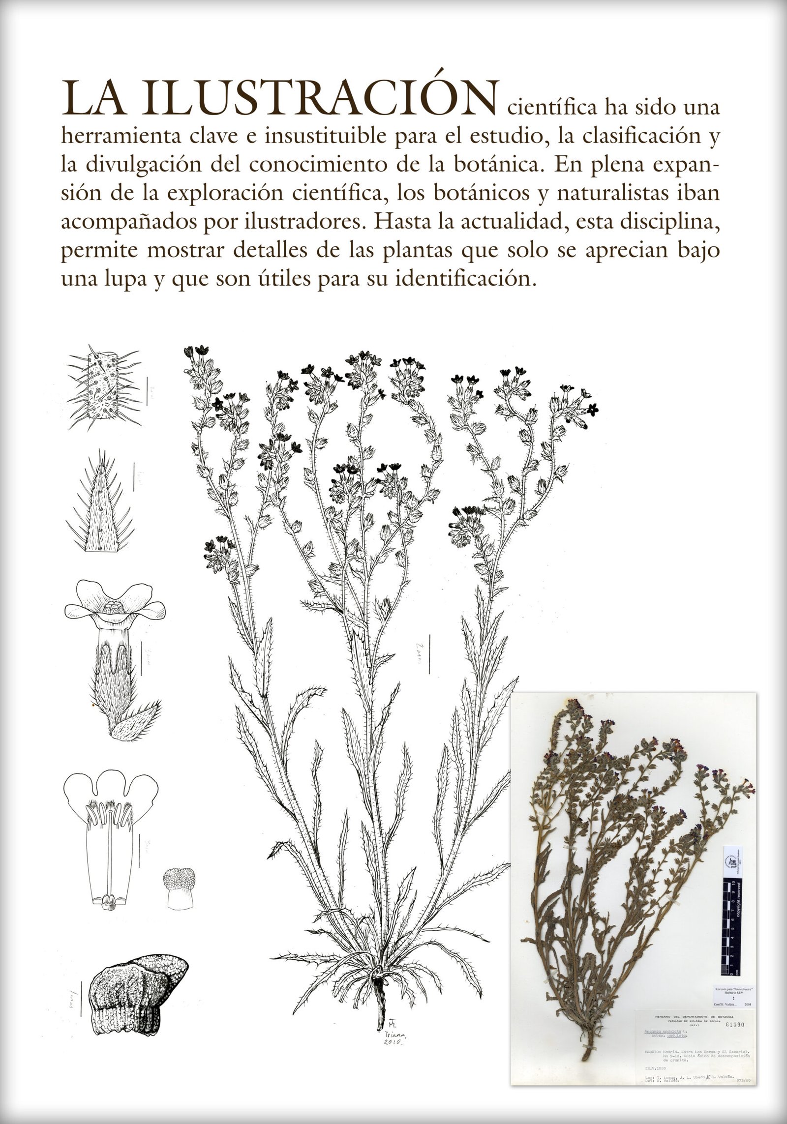 La muestra incluye reproducciones de pliegos históricos, ilustrados por el artista Rodrigo Tavera Mendoza para Flora Iberica (la mayor obra de descripción de la flora de España), y obras originales de la joven investigadora e ilustradora Paula Martín Rodríguez, a través de las cuales se puede constatar cómo la ilustración científica, es una disciplina artística al servicio de la ciencia, que permite captar todos los rasgos y detalles de los especímenes conservados en los herbarios.