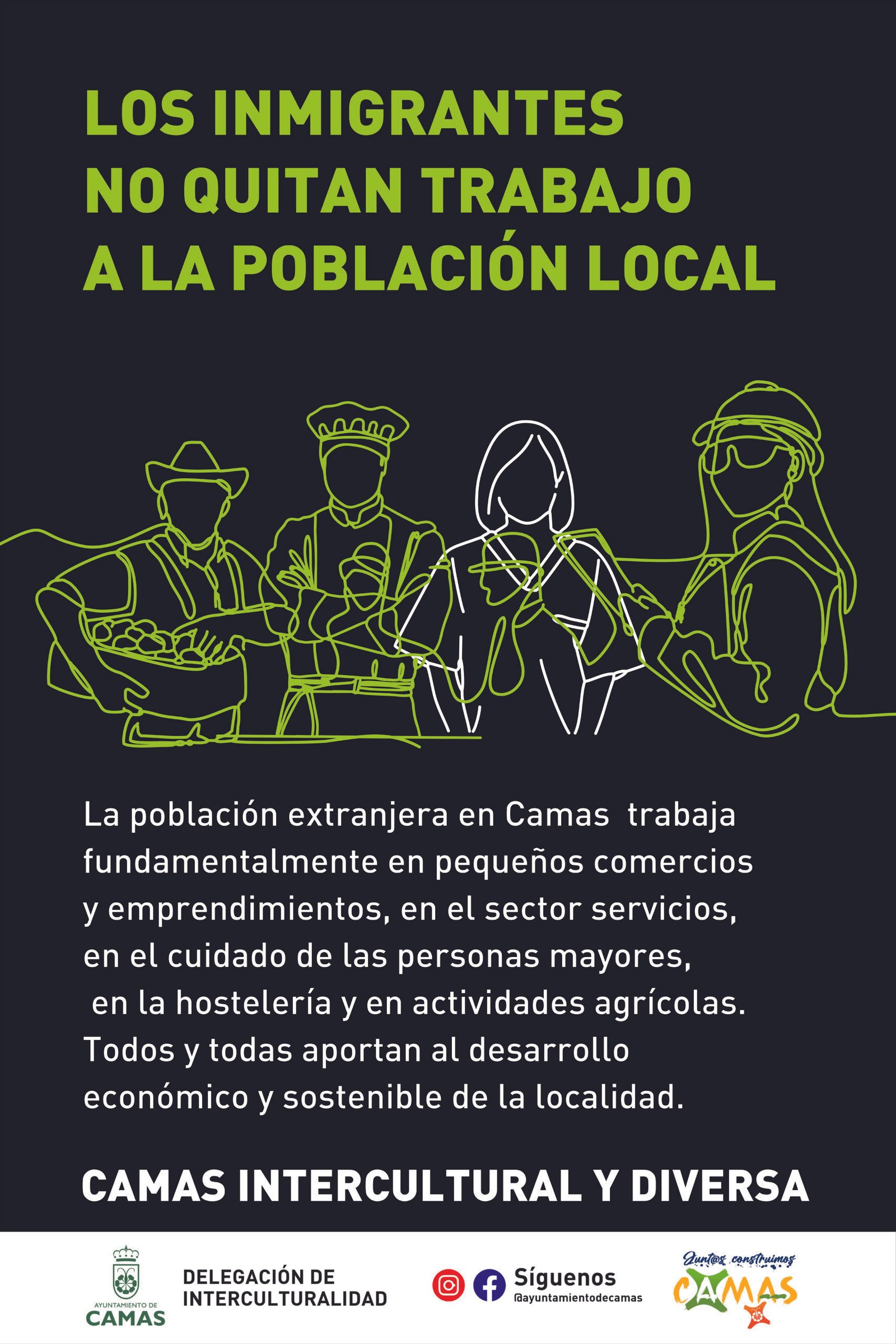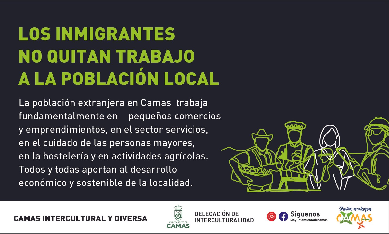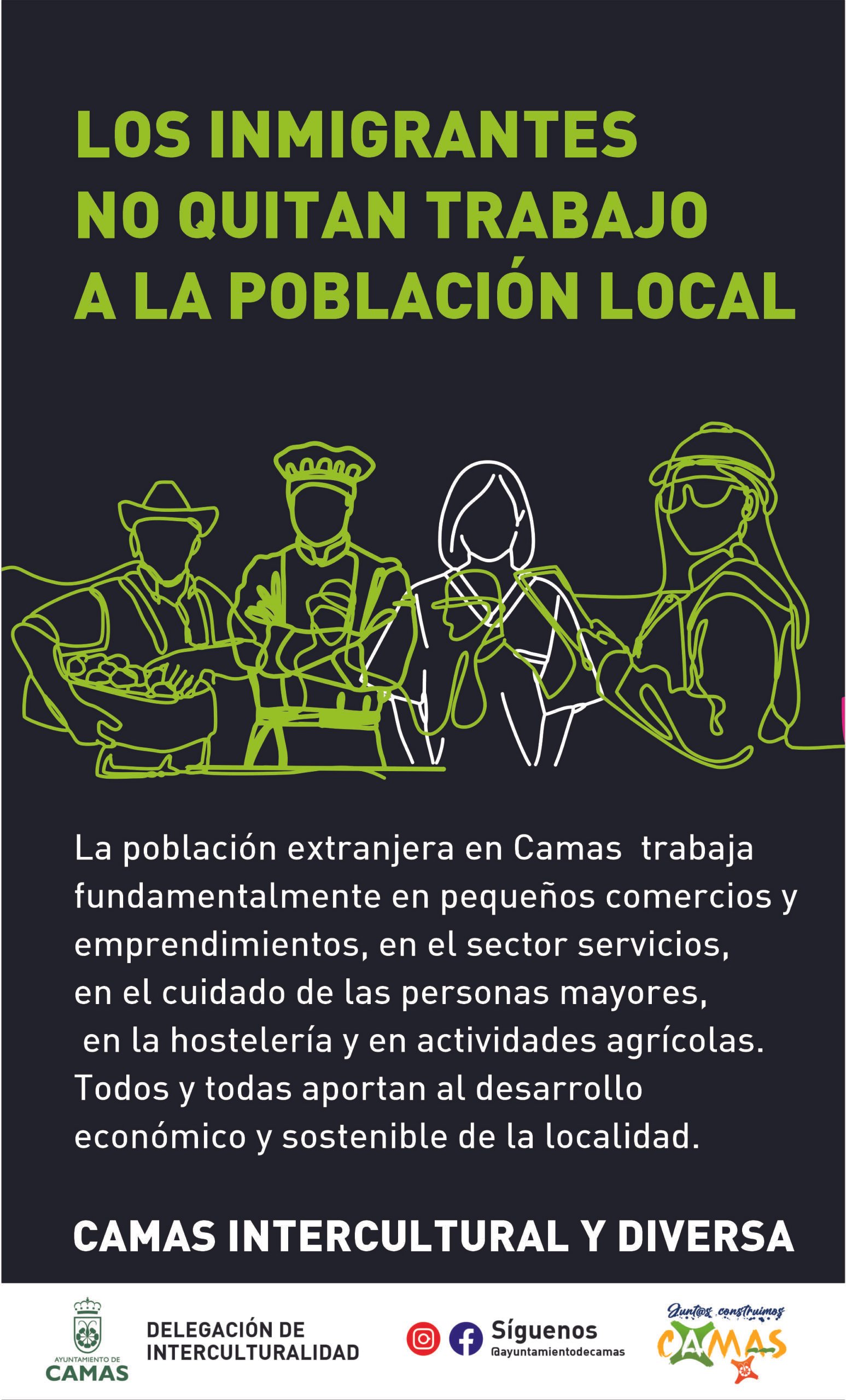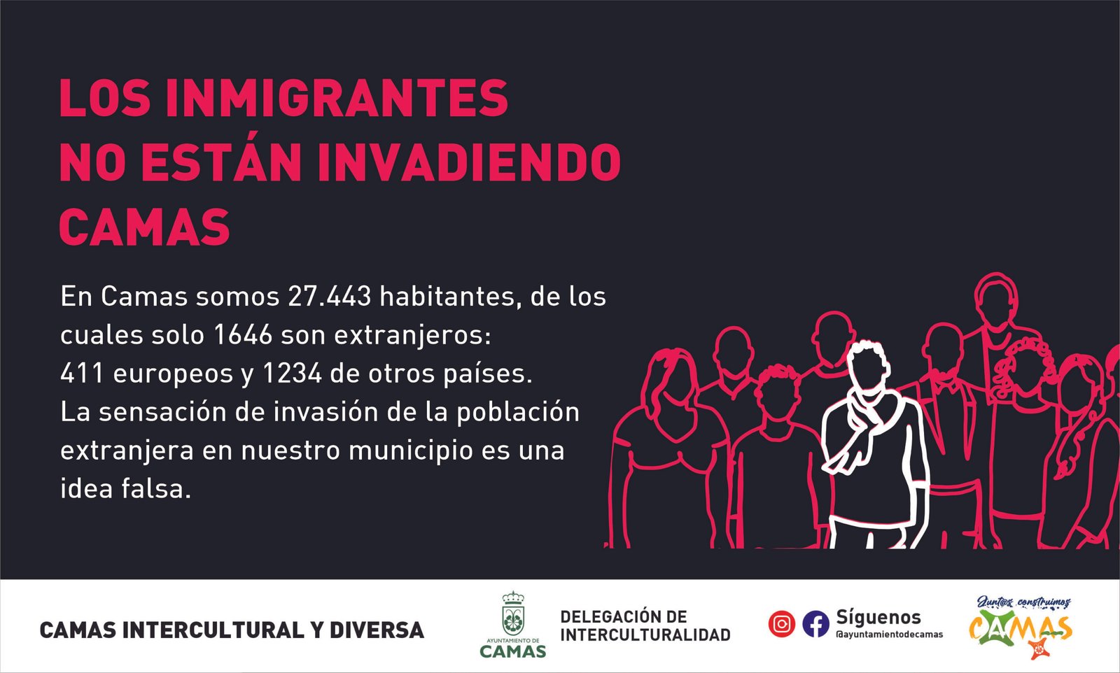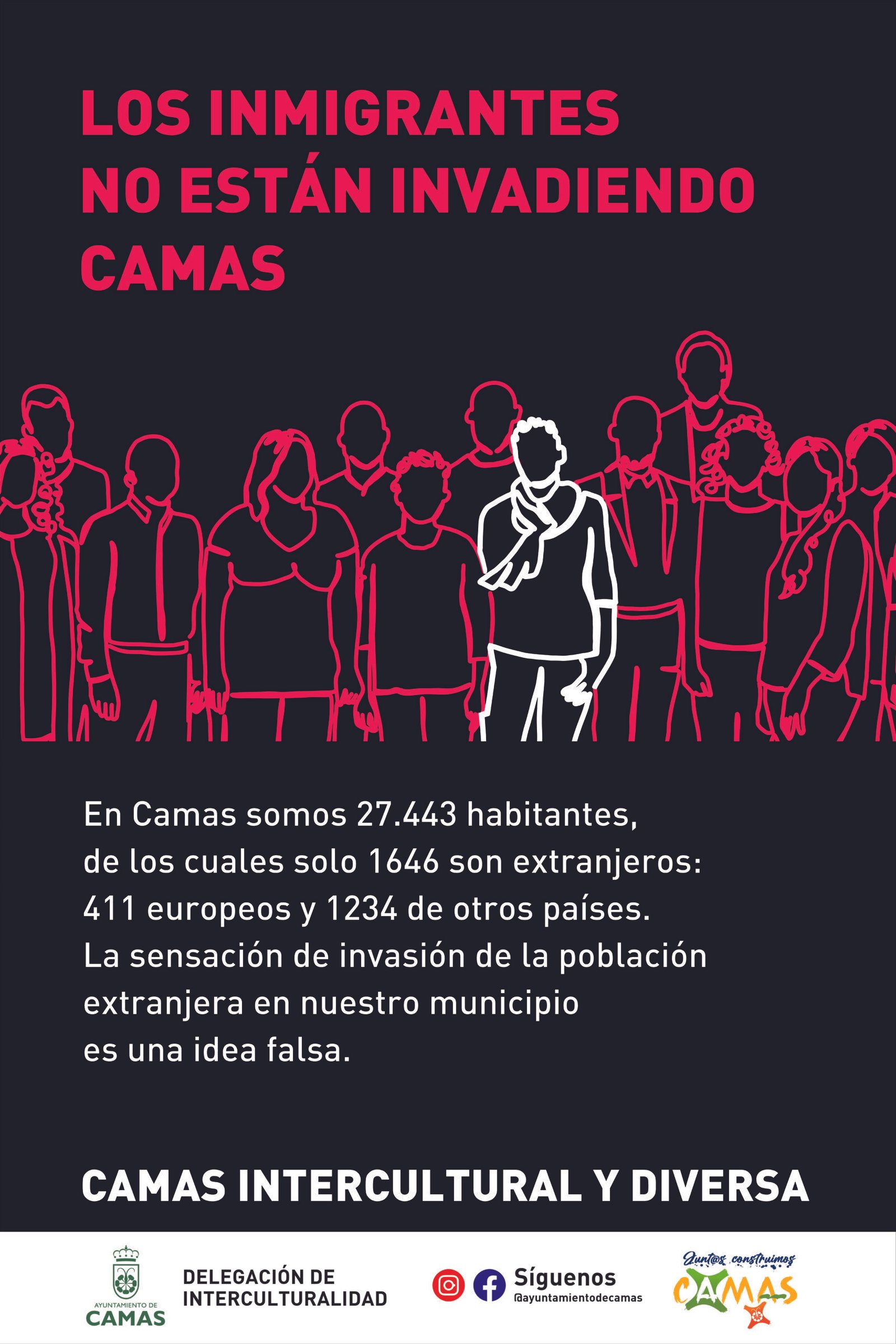 Por otro lado, se trascendió el argumento de las cifras a favor de argumentos basados en el respeto de la población migrante y en los Derechos Humanos. En primer lugar se orientó el trabajo hacia la sensibilización de toda la población del municipio de Camas sobre los efectos negativos de los bulos; se desmontaron falsas creencias que han naturalizado los bulos, se visibilizó el aporte de la población extrajera a nuestra ciudadanía no solo desde el punto de vista económico, sino también sociocultural y se formaron Corresponsales de interculturalidad en los institutos, con el fin de abordar el tema de manera adecuada.